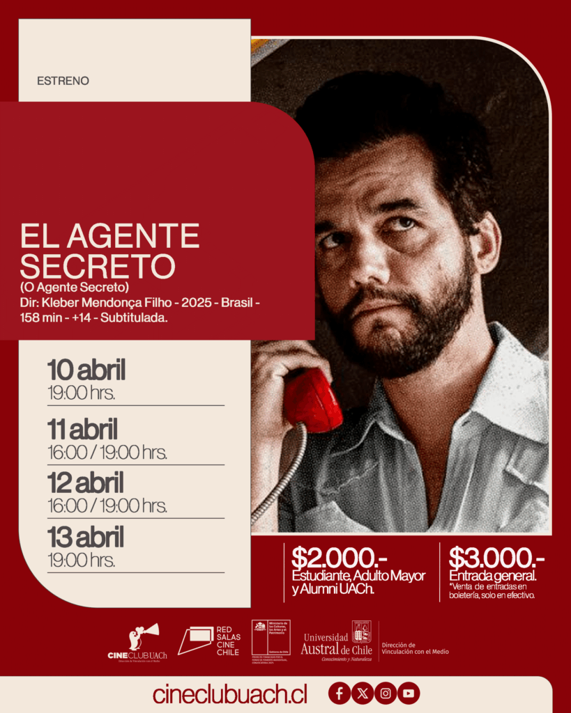 El Cine Club de la Universidad Austral de Chile cuenta con el financiamiento del Fondo Audiovisual, convocatoria 2025, del Ministerio de las Culturas, las Artes y el Patrimonio.