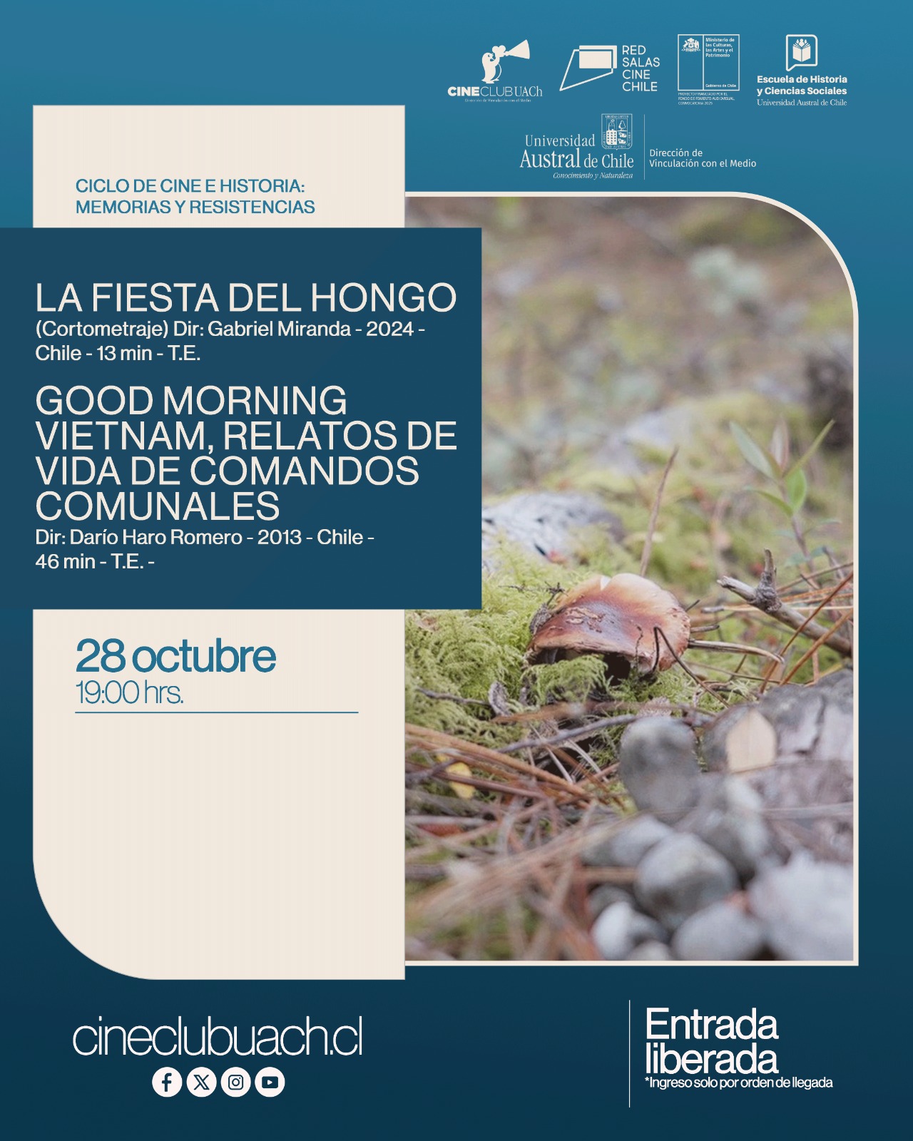 La película nos lleva a la comunidad de Los Ulmos-La Plata, en el sur de Chile, donde las mujeres recolectoras de hongos han sabido resistir y adaptarse a los cambios que trajo el modelo forestal desde los años setenta. A través de sus historias, descubrimos cómo la recolección conecta tradición, naturaleza y memoria, revelando la fuerza con que las comunidades rurales defienden su territorio y mantienen vivos sus saberes.